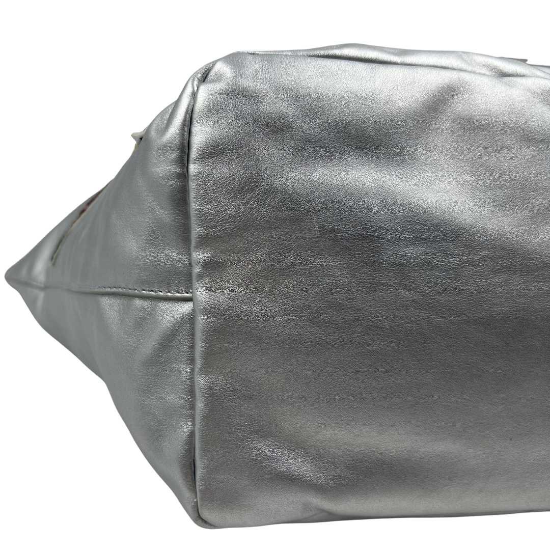 Elevate your everyday style with this stunning tshirt&jeans two-way bag in lustrous silver faux leather. Adorned with eye-catching sequin star details and polished silver hardware, this versatile piece transitions seamlessly from day to night. The secure magnetic closure keeps your essentials safe while the two-way design offers flexible carrying options.