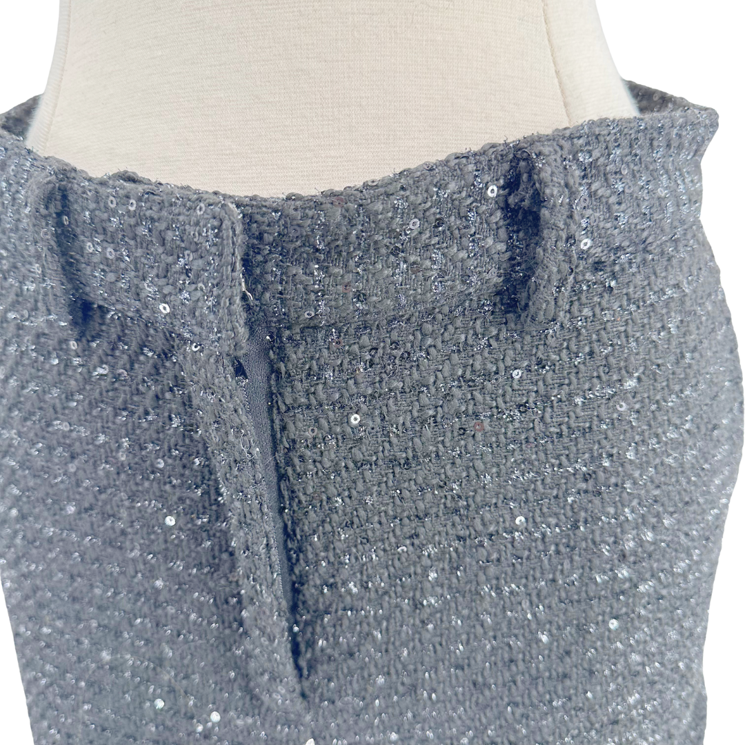 These black trousers blend timeless tweed texture with glamorous sequin accents for a refined, statement-making piece. The structured trouser fit ensures a polished appearance whether styled for the day or for a night out.
