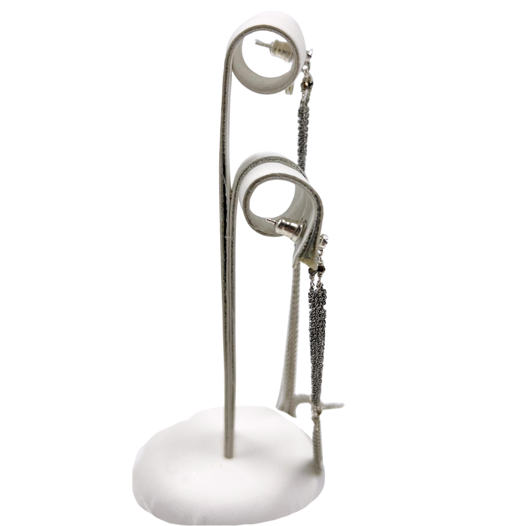 These silver-toned dangle earrings offer timeless elegance with a modern edge. The flowing design catches light beautifully, adding dimension and movement to your look.