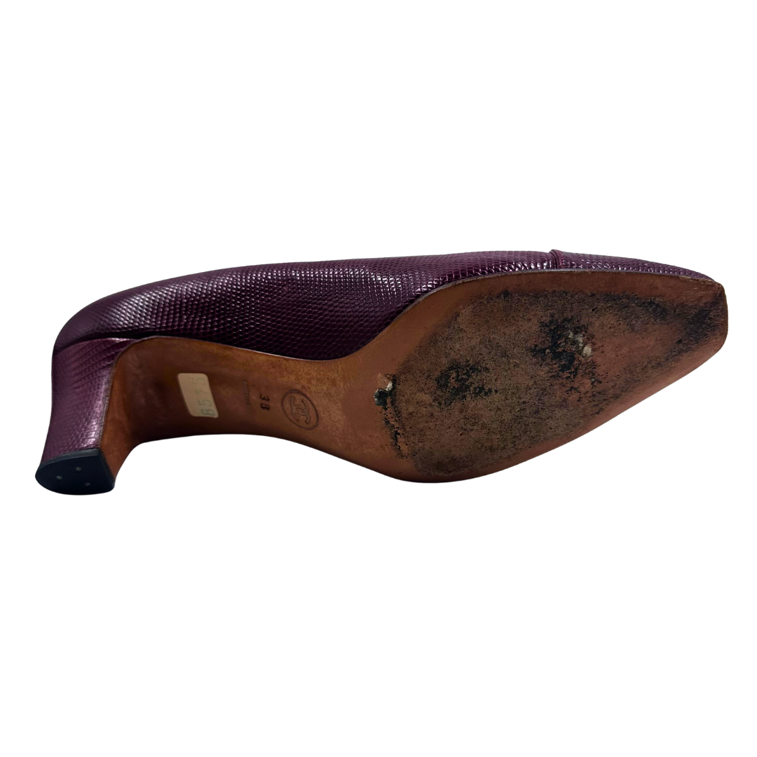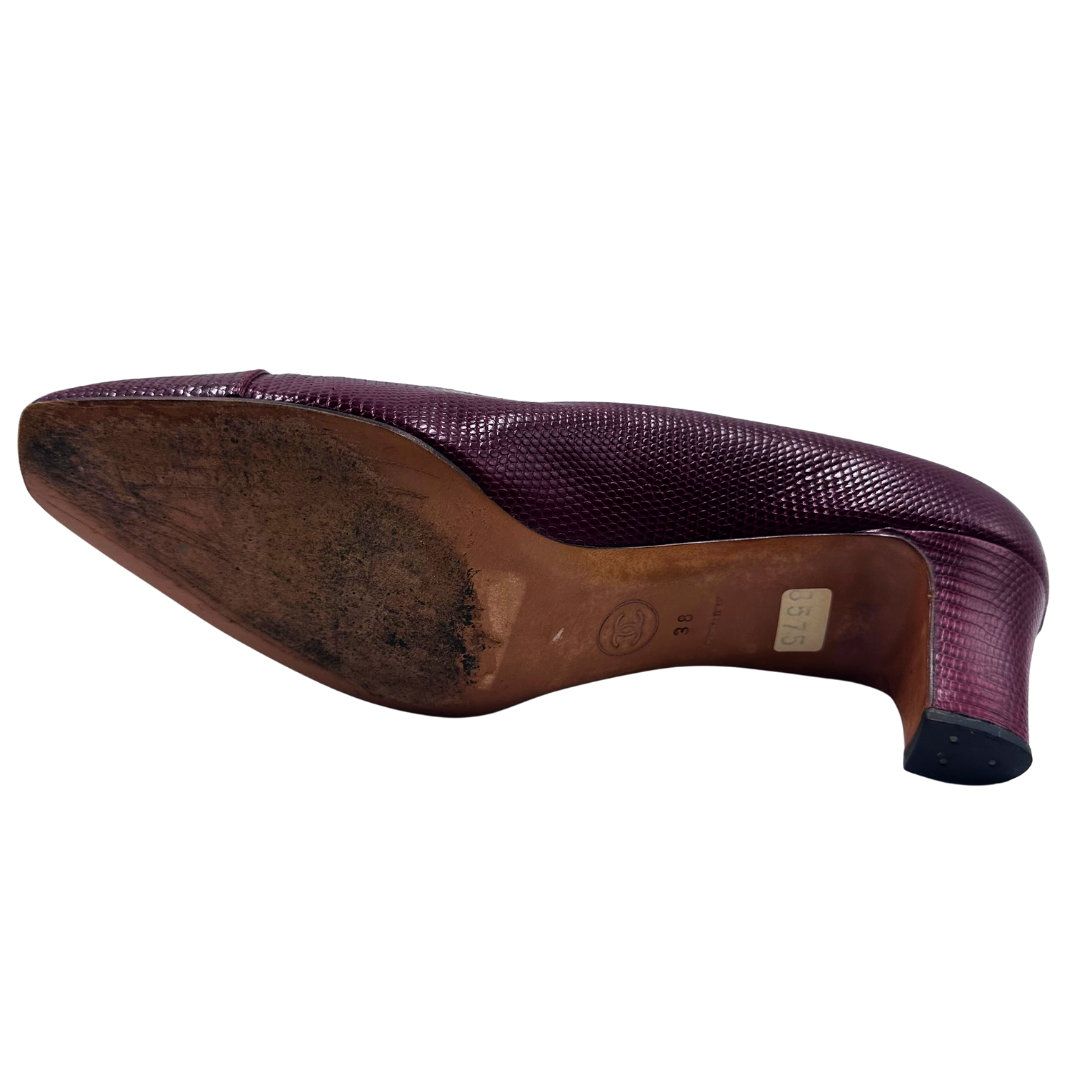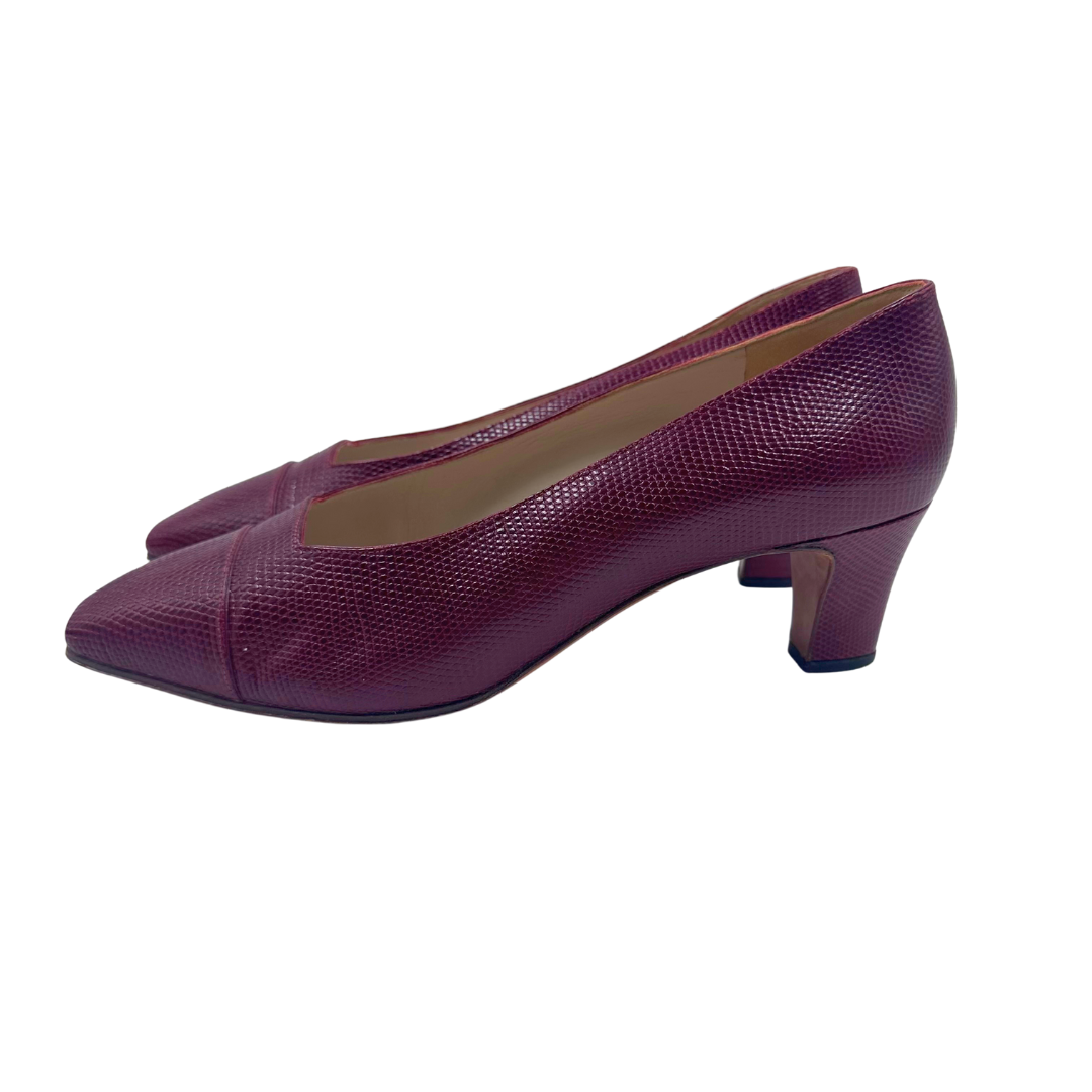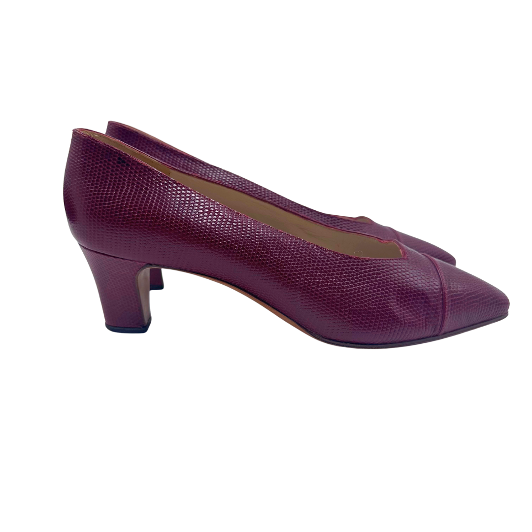 Striking red leather heels with textured detailing that adds depth and dimension to this bold statement shoe. The snip toe silhouette creates a refined, elongated line for a flattering fit.
