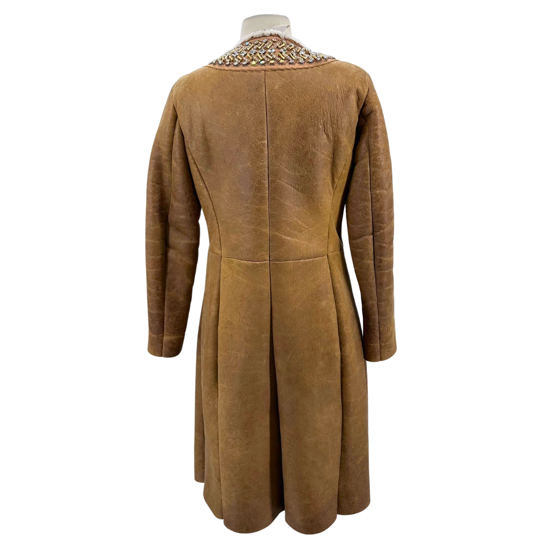 Prada Brown Coat This luxurious brown coat showcases premium shearling construction paired with elegant mink trim for unparalleled warmth and sophistication. The rhinestone-embellished collar adds a touch of glamour and refinement. A
