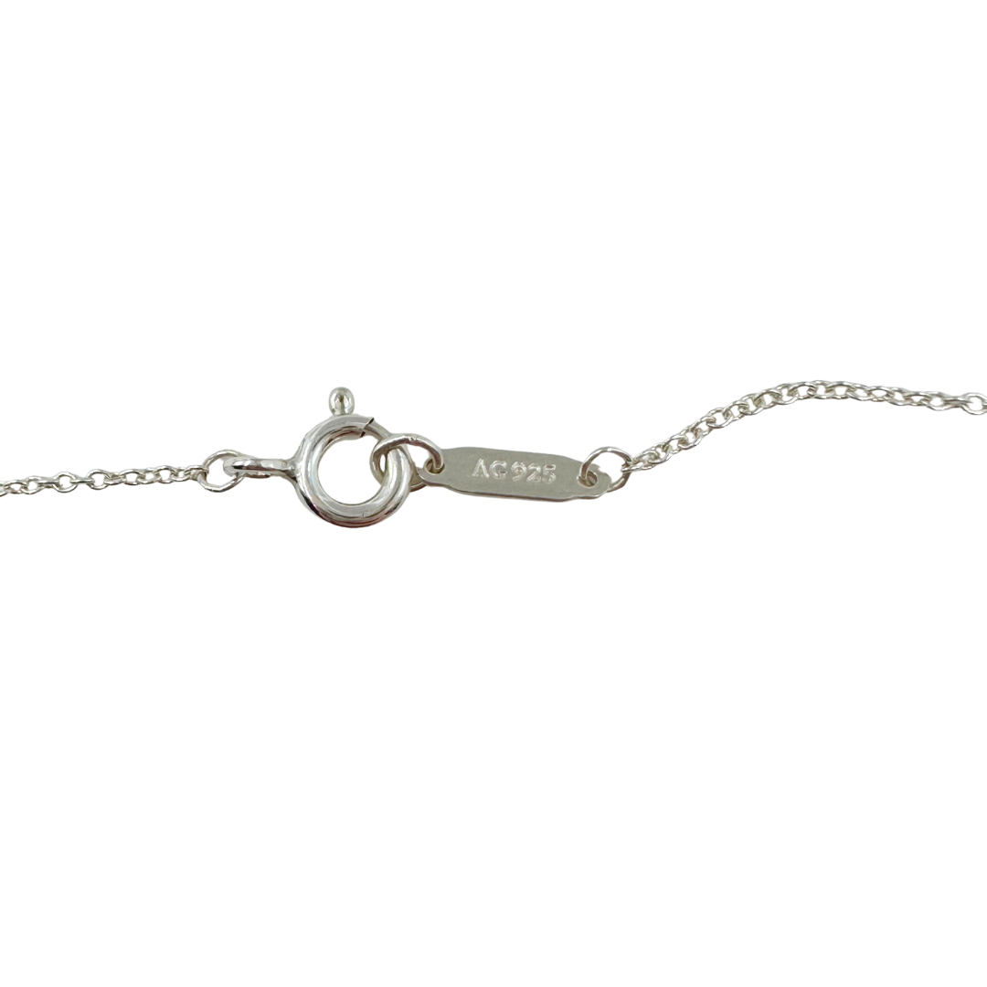 Iconic "Return to Tiffany" necklace in sterling silver, featuring a vibrant pink enamel color splash design. This signature piece blends Tiffany's timeless aesthetic with a contemporary pop of color, making it an ideal accessory for those seeking understated luxury with modern flair.