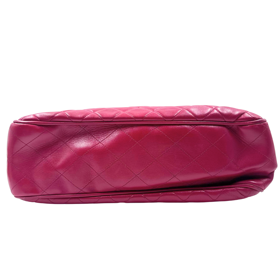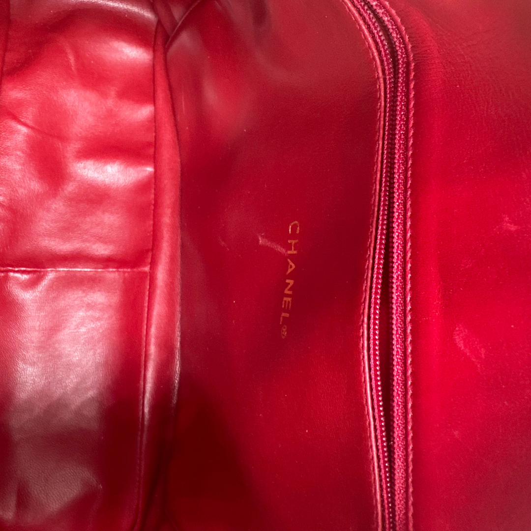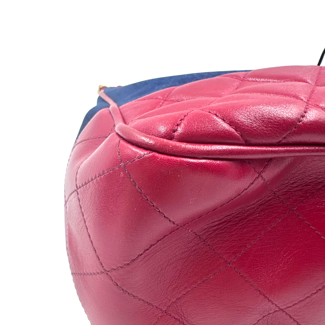 This Chanel Denim Chain Tote merges casual and luxury with its striking blue denim body accented by vibrant red leather details. The iconic CC motif adorns an elegant chain strap finished in gleaming gold hardware, while a secure magnetic closure protects your essentials. The supple leather-lined interior completes this coveted designer piece.