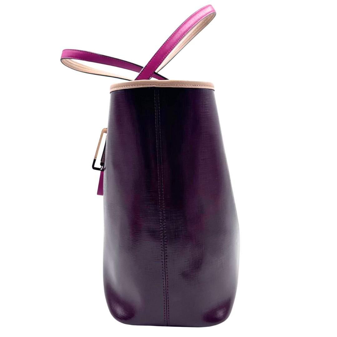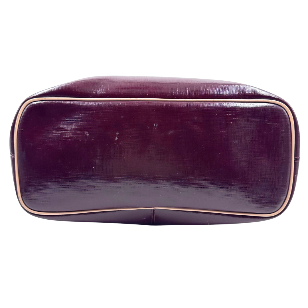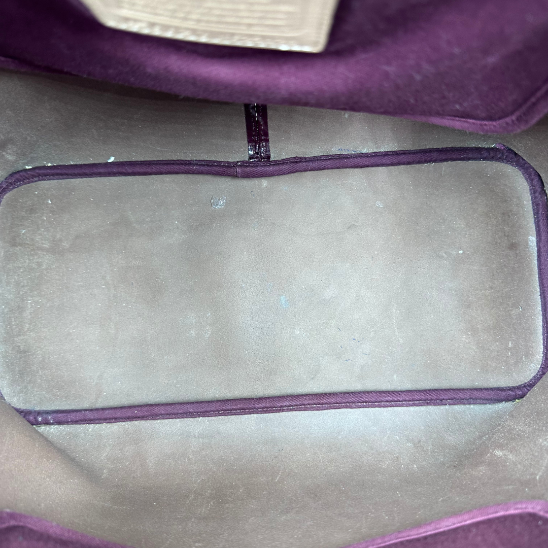 This Coach tote balances rich burgundy textured leather with unexpected pink contrast accents for a modern aesthetic. Crafted with quality leather throughout, including refined leather details, the bag features polished silver hardware and a secure clasp closure.