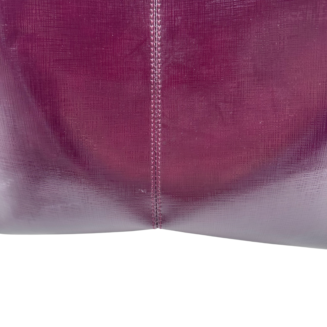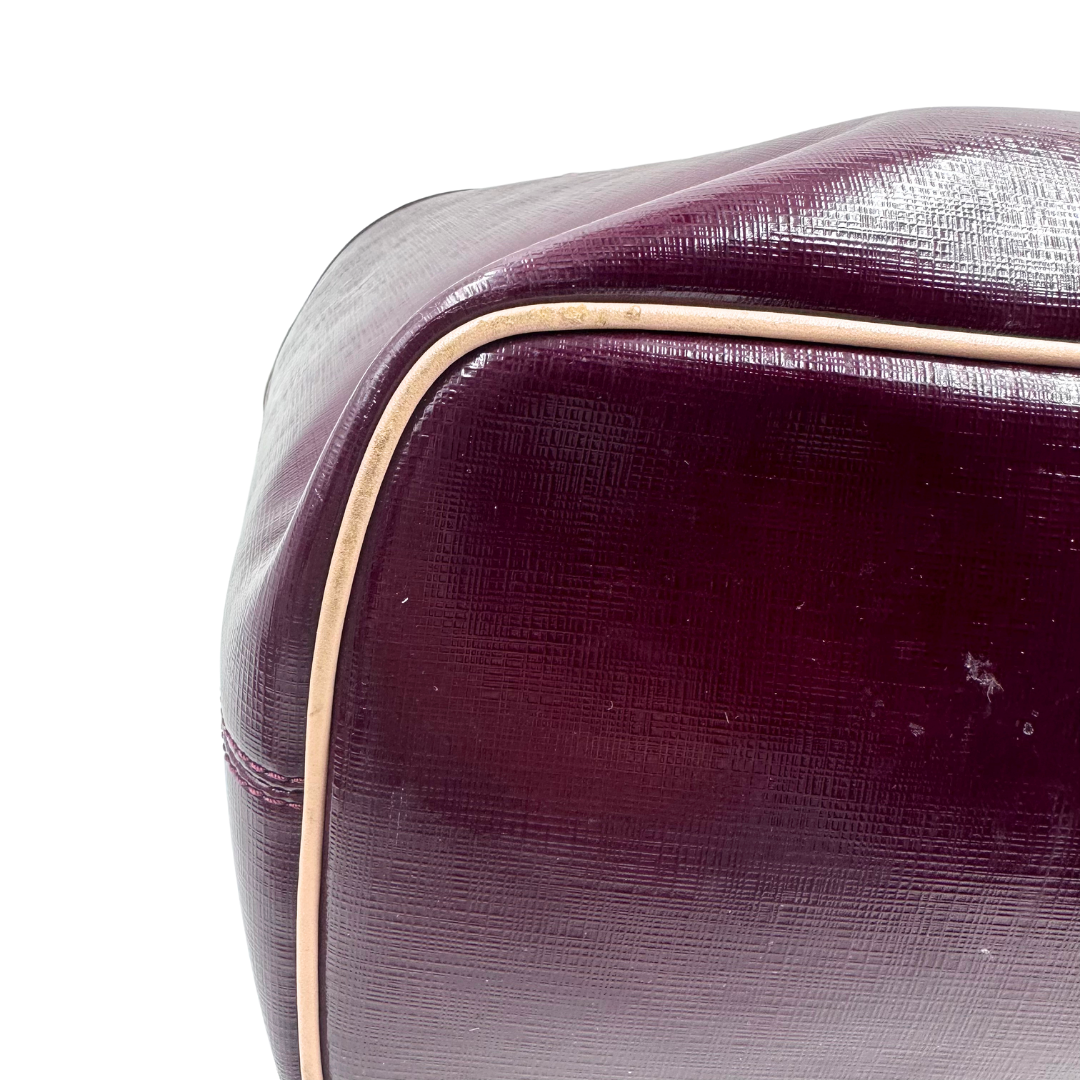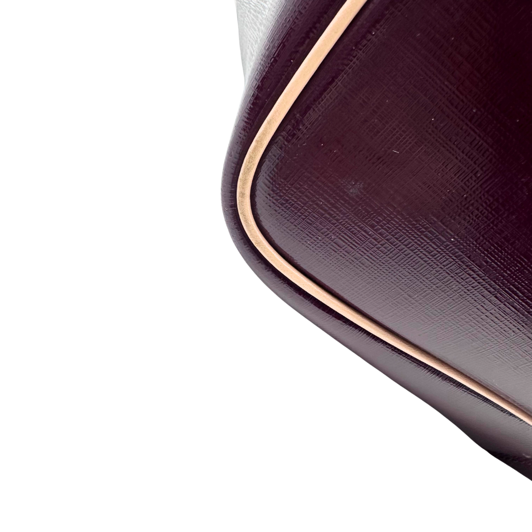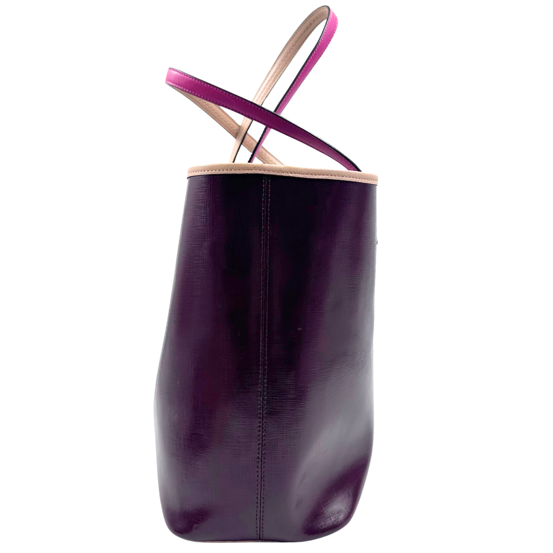 This Coach tote balances rich burgundy textured leather with unexpected pink contrast accents for a modern aesthetic. Crafted with quality leather throughout, including refined leather details, the bag features polished silver hardware and a secure clasp closure.