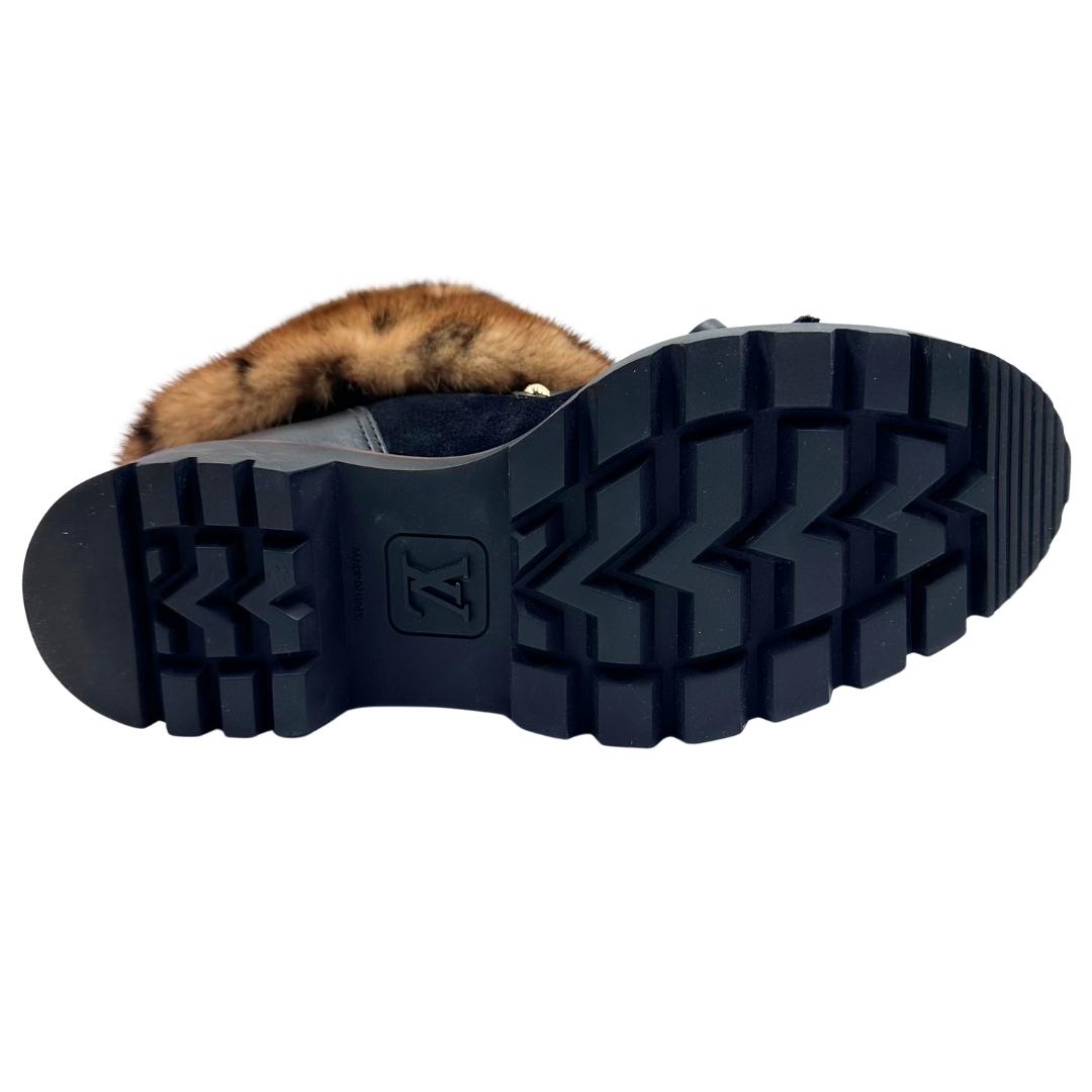 Louis Vuitton 37 Black/Brown mink fur/suede/coated canvas Boots