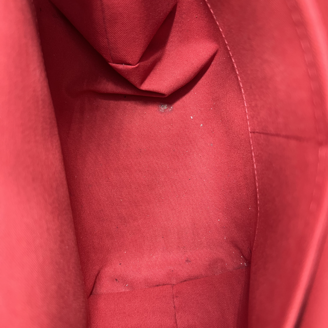 This Louis Vuitton Totally MM tote showcases the iconic Damier Ebene coated canvas with gleaming gold hardware. The practical top zip entry keeps your essentials secure, while two open side pockets offer convenient access to frequently needed items. Inside, a rich red fabric lining adds a pop of color and luxury.