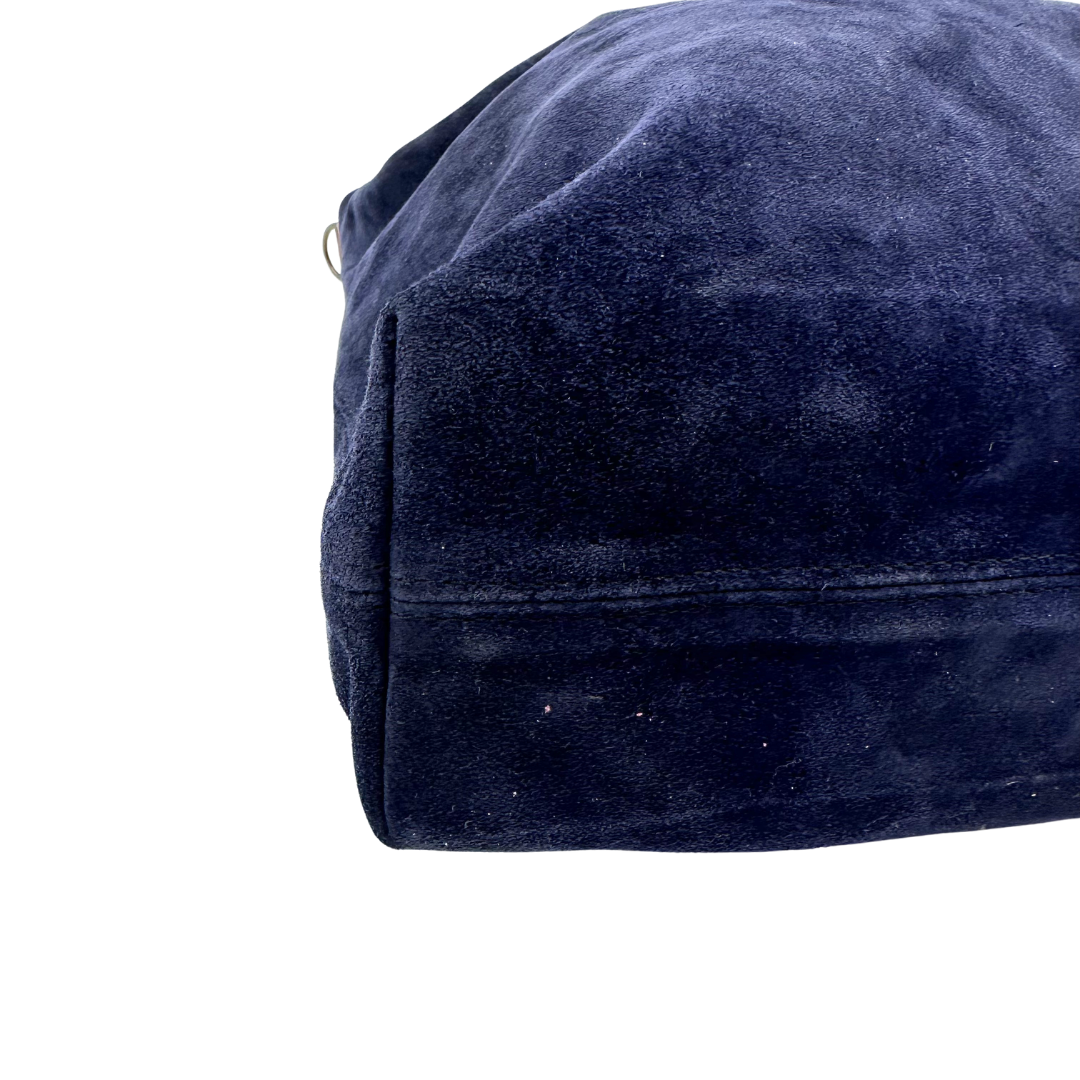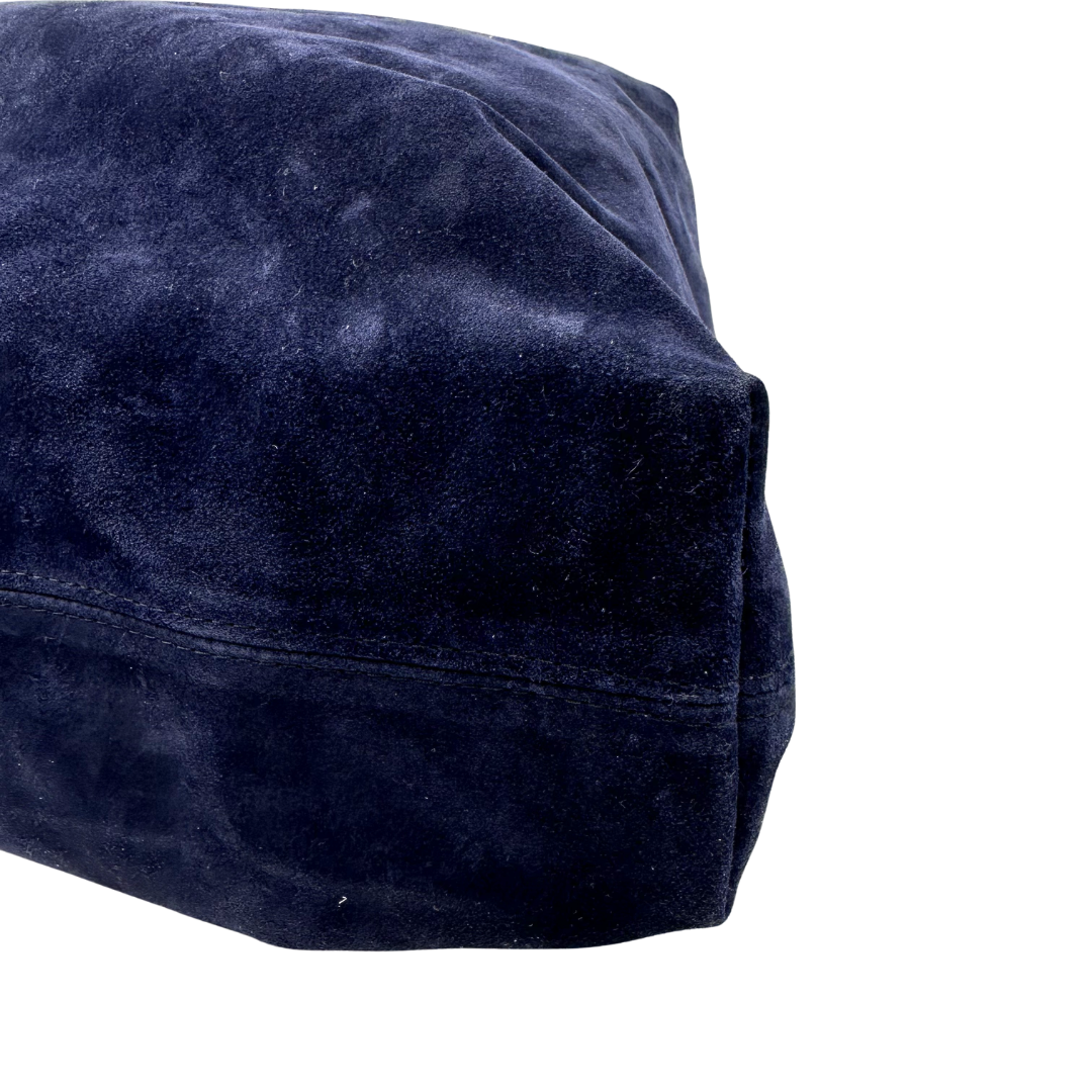 Introducing the Parker Thatch shoulder bag, a timeless piece crafted in soft navy suede with rich brown leather accents. Aged gold hardware and a practical top zip entry complete this sophisticated design, offering both style and functionality for everyday elegance.