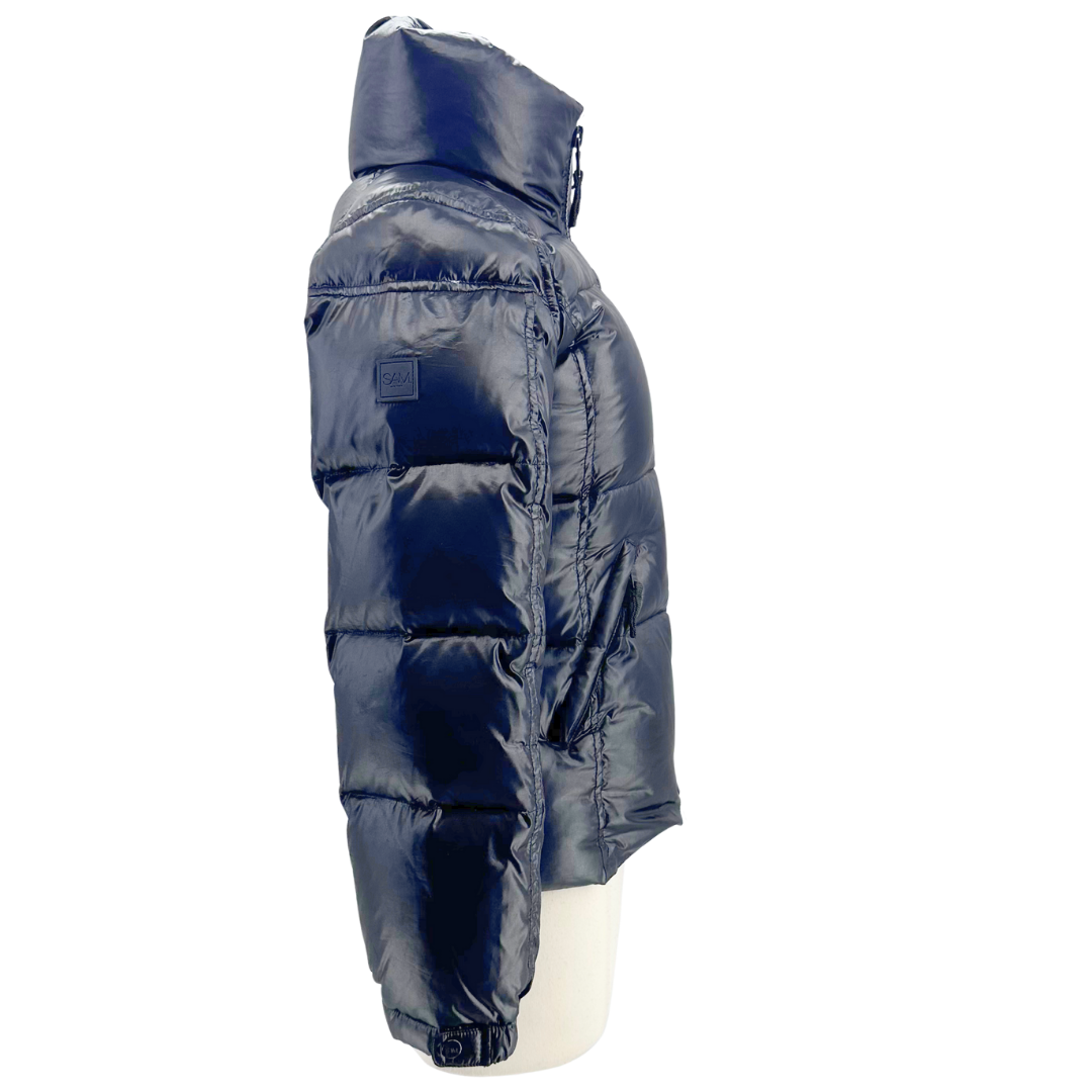 This SAM puffer coat in black combines luxury warmth with timeless style. Filled with 80% premium goose down and 20% plumes, it delivers exceptional insulation without excess bulk. The classic black design pairs effortlessly with any wardrobe, making it a versatile essential for cold weather. Size L offers a comfortable fit for all-day wear.