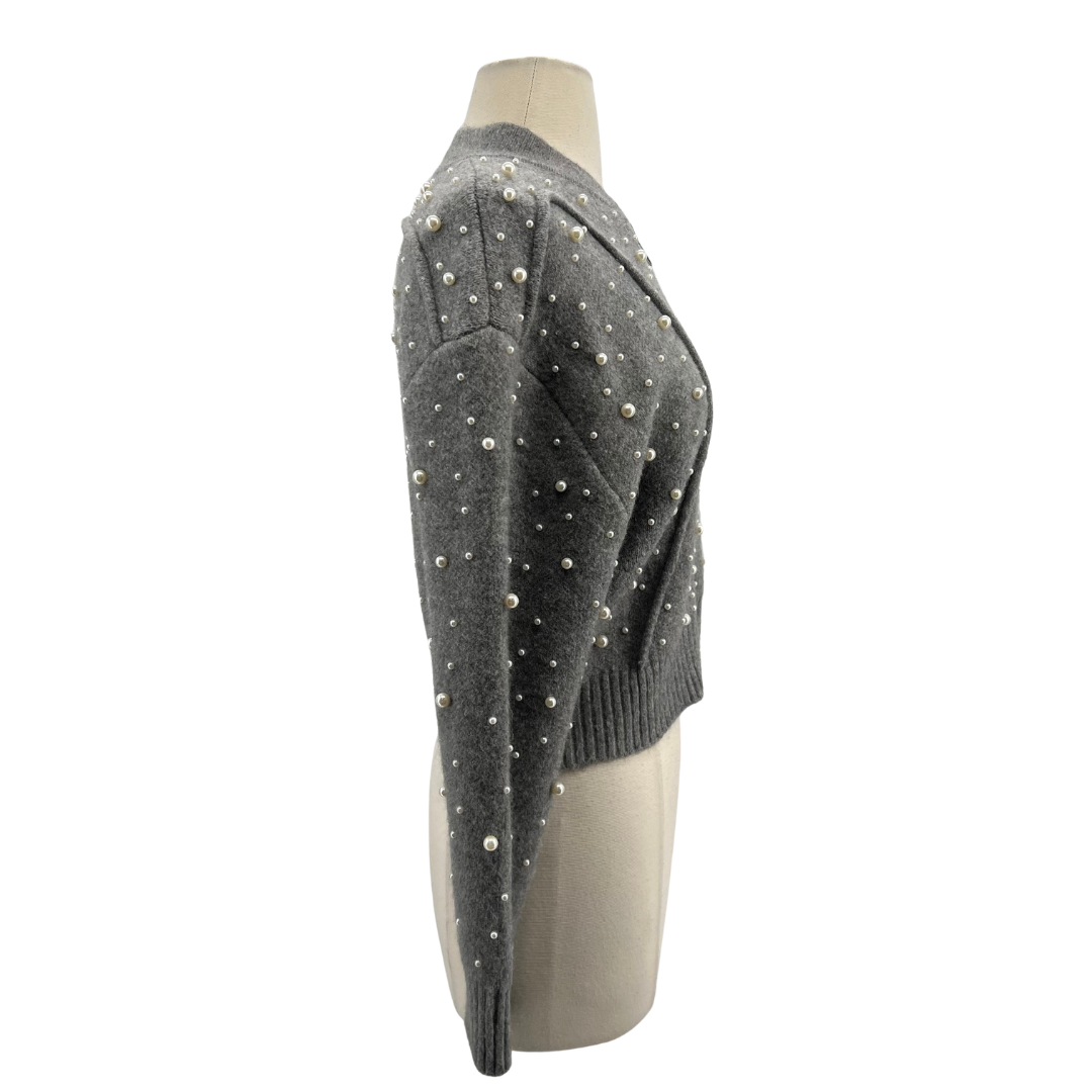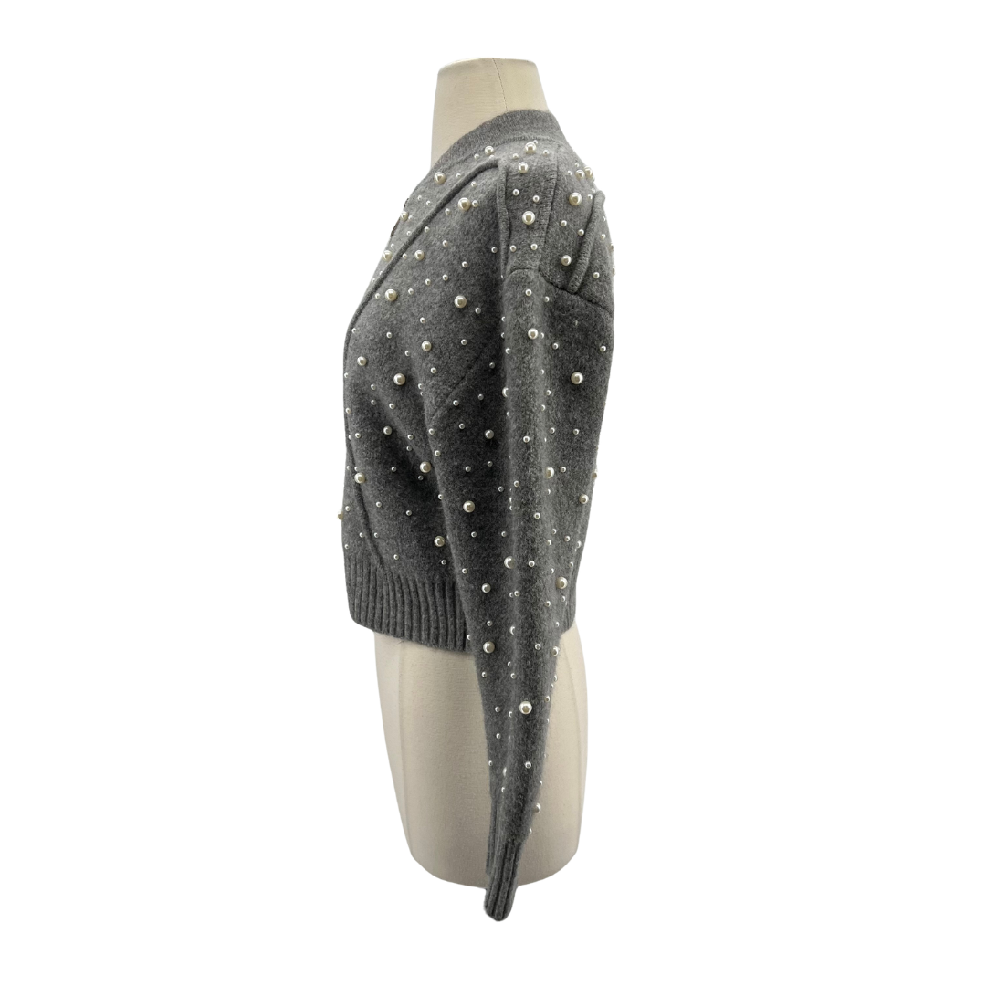 Elevate your everyday wardrobe with this sophisticated Zara grey sweater in size S. Crafted from comfortable acrylic, this piece features an elegant zip front closure and delicate pearl detailing for a refined touch. Perfect for layering or wearing solo, it's a versatile staple that transitions seamlessly from casual to polished looks.
