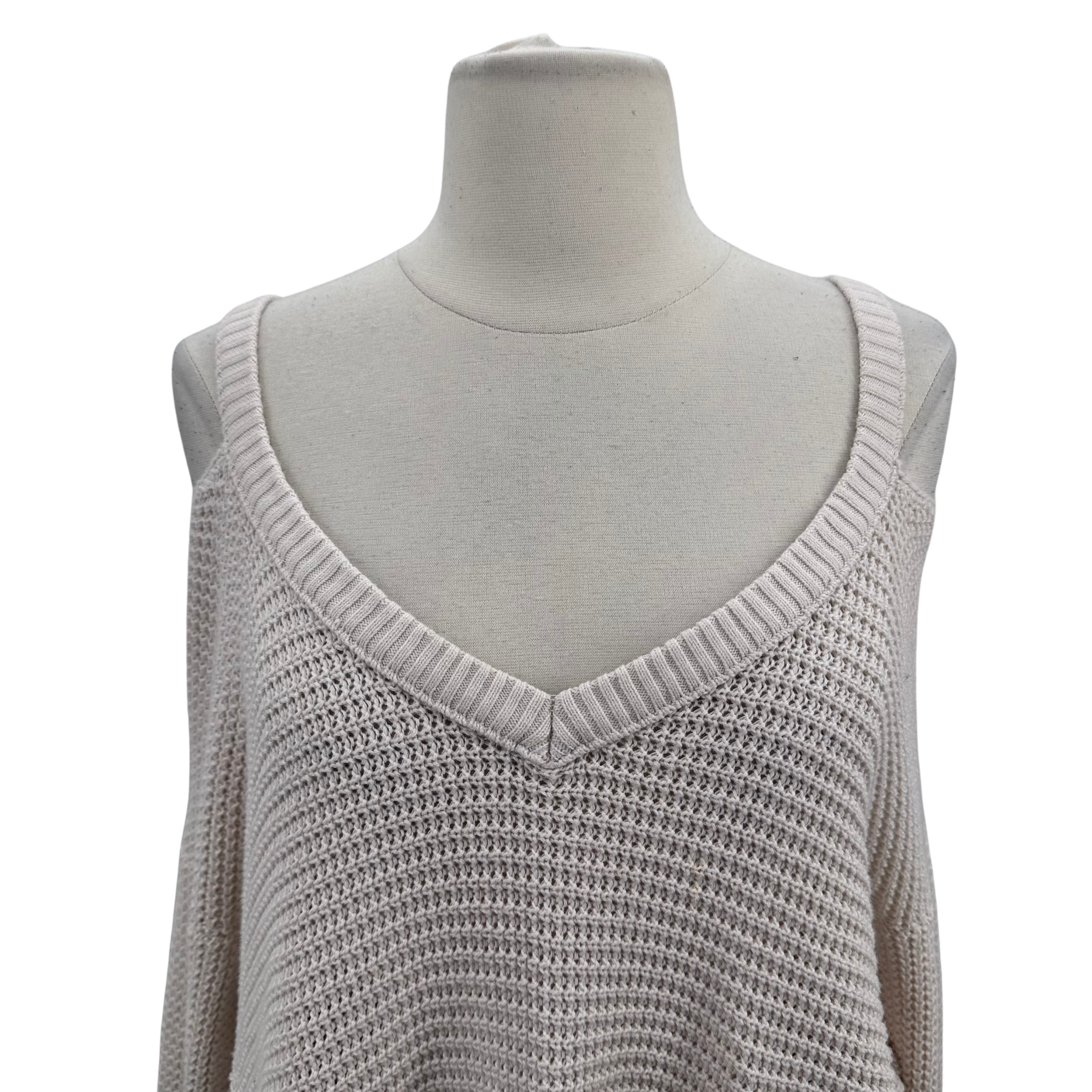 Free People's effortless cold shoulder sweater in soft stone cotton. The waffle knit texture adds visual interest and dimension, while the off-shoulder silhouette brings a relaxed, modern edge to any outfit. Perfect for layering or wearing solo, this versatile piece transitions seamlessly from casual to dressed-up occasions.
