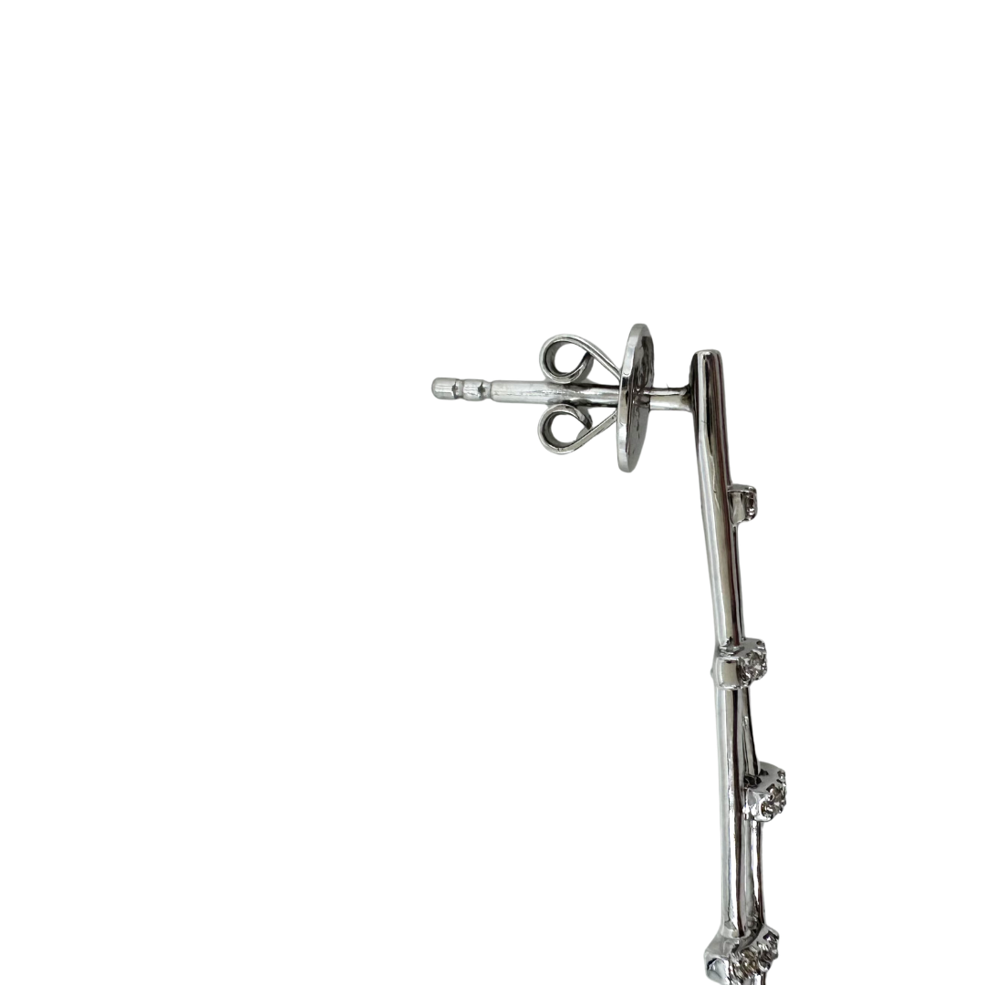 Refined drop-style earrings crafted in 14k white gold, featuring delicate bar and chain details adorned with sparkling diamonds.