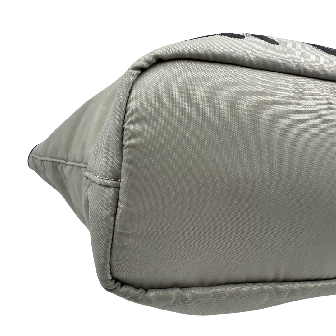 Elevate your everyday carry with this classic Juicy Couture tote in soft beige nylon. Featuring polished silver hardware and a secure magnetic closure, this versatile bag combines functionality with timeless style. The black leather trim accented with an iconic crown graphic adds a signature touch of luxury.