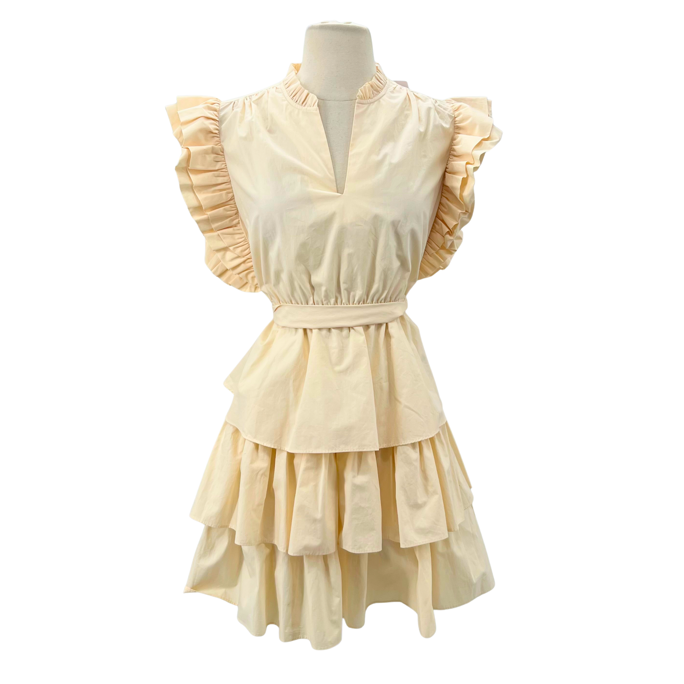 This Marie Oliver dress in light peach cotton combines effortless elegance with thoughtful construction. The triple-layered bottom creates beautiful movement and dimension, offering both visual interest and comfortable drape. Perfect for warm-weather styling, the soft cotton fabric feels gentle against the skin while maintaining its shape throughout the day.