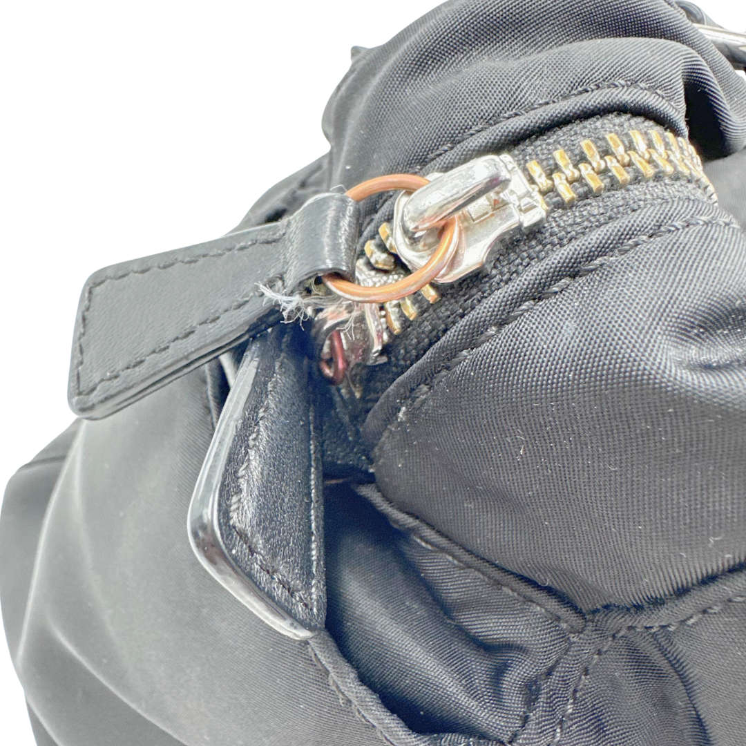 This MZ Wallace tote combines durable black nylon with refined leather accents and polished silver hardware for a balanced aesthetic. The top zip entry secures your essentials, while the functional front pockets add convenient organization options.